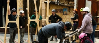 • A production shot from Gianni Schicchi showing Lauretta in a white singing whilst holding her father, Gianni Schicchi's arm