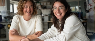 Two women looking at a letter smiling.